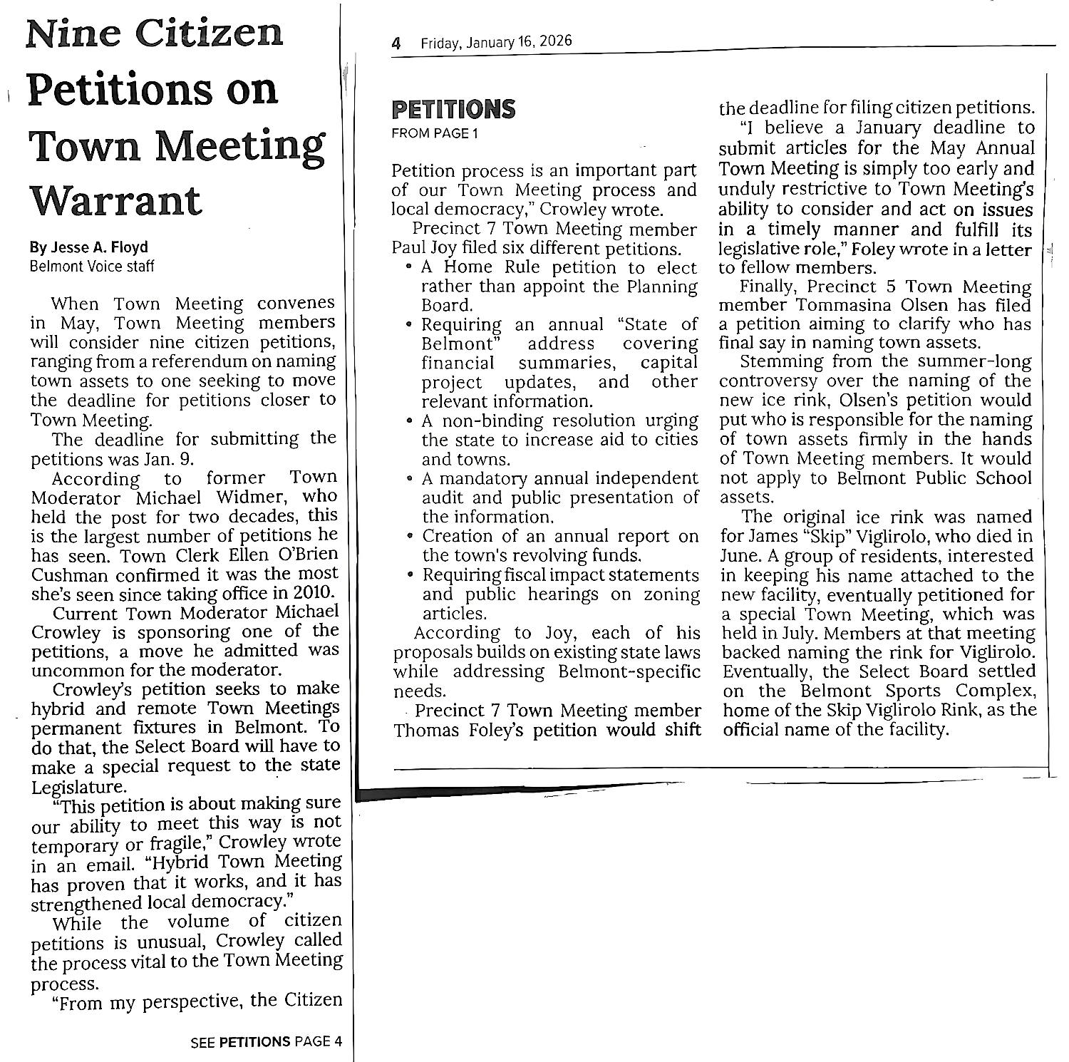 Hybrid Town Meeting Citizen Petition on the Warrant for Annual Town Meeting